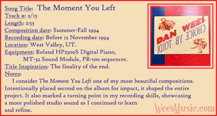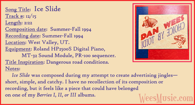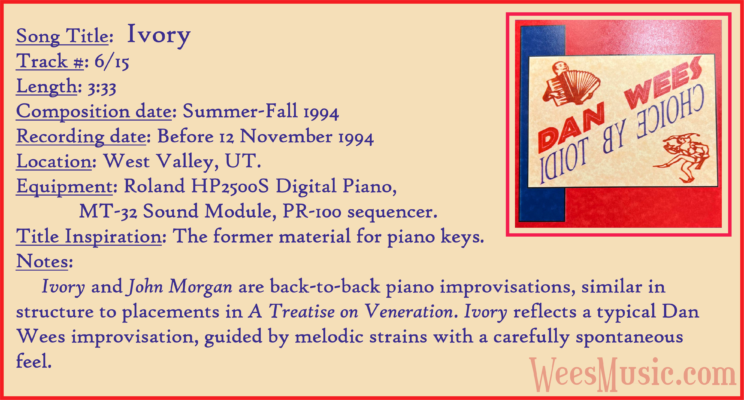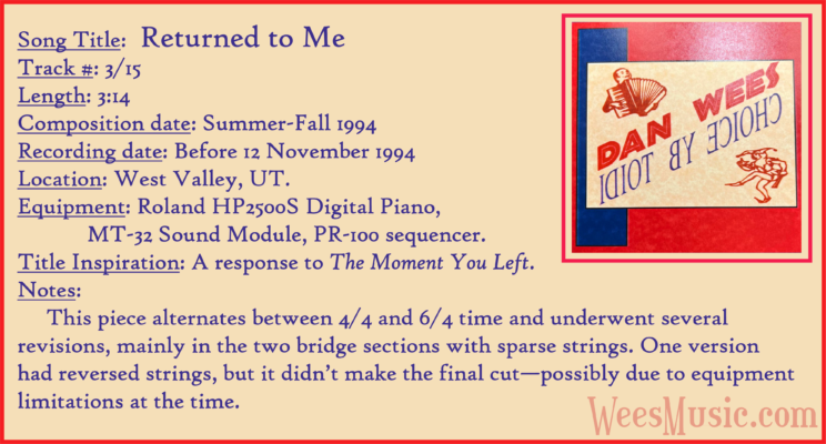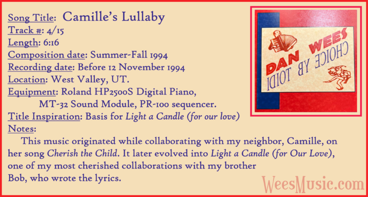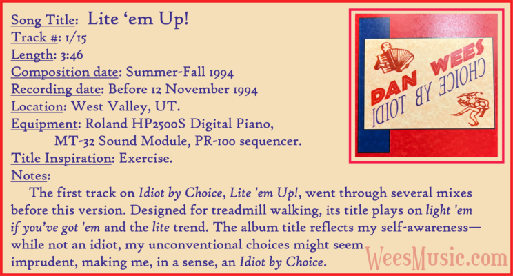 Idiot by Choice - The Entire Recording Track 1: Lite 'em Up! Track 2: The Moment You Left Track 3: Returned to Me Track 4: Camille's Lullaby Track 5: Candy Lanes Track 6: Ivory Track 7: John Morgan Track 8: Kismet Track 9: Submission Track 10: Debbie Track 11: The Touch Track 12: Ice Slide Track 13: Time Out! Track 14: Distant Trances Track 15: Remember Me